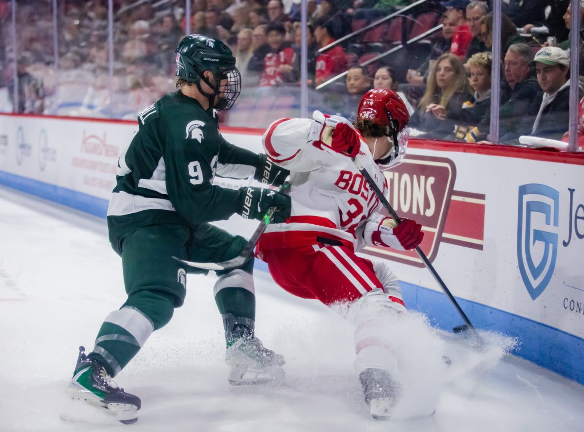 The Terriers failed to follow Pandolfo’s instructions in the lead-up to Friday’s contest, which emphasized wanting to hang onto the puck and force Michigan State to steal it, rather than entering a battle and playing the Spartans’ direct style of hockey.