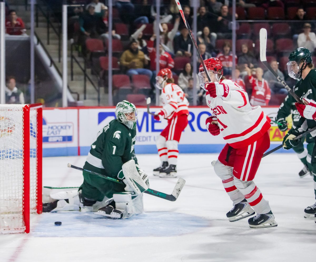 With a three-goal third-period lead, MSU continued generating chances, while BU was hemmed into its defensive zone. The Spartans outshot BU 14-5 in the third period and 34-20 overall.